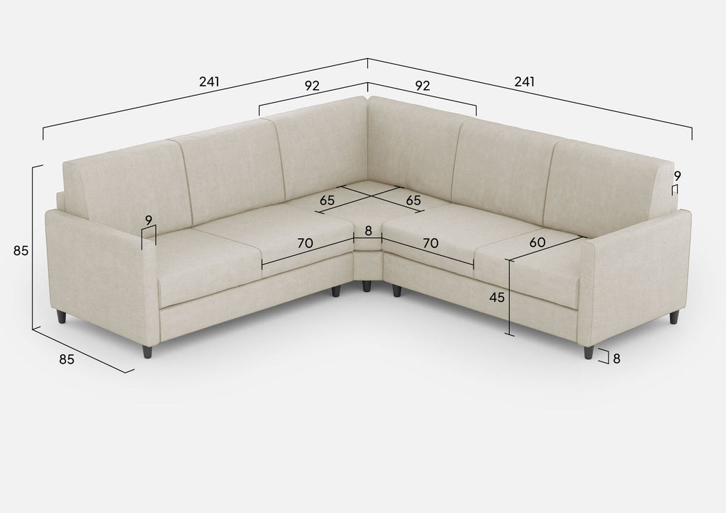 Divano Angolare 5 Posti 241x241x85 cm Karay in Tessuto Latte