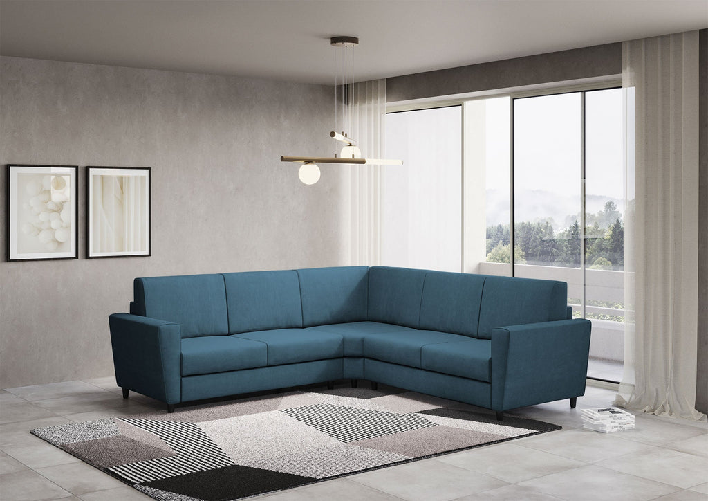 Divano Angolare 5 Posti 248x248x85 cm Yasel in Tessuto Avio