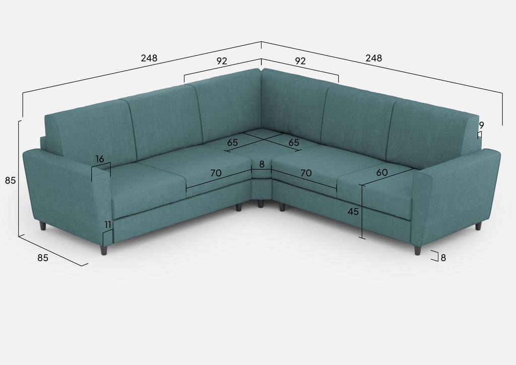 Divano Angolare 5 Posti 248x248x85 cm Yasel in Tessuto Petrolio