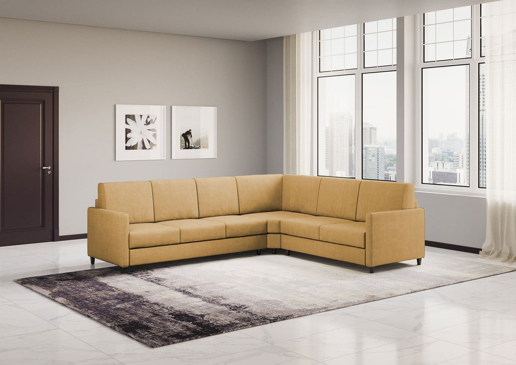 Divano Angolare 6 Posti 281x221x85 cm Karay in Tessuto Ocra
