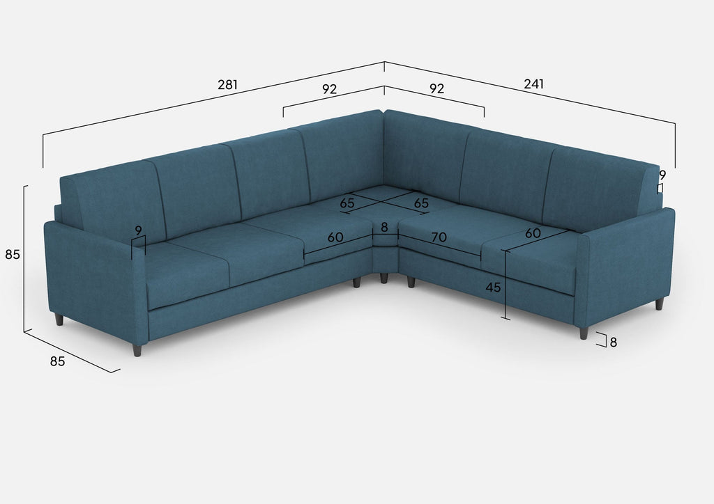 Divano Angolare 6 Posti 281x241x85 cm Karay in Tessuto Avio