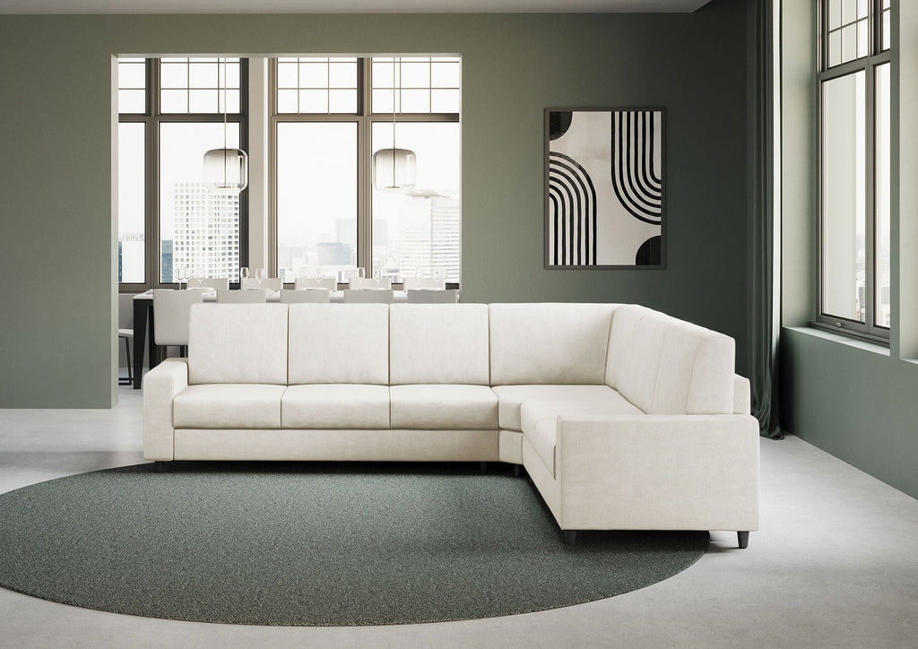 Divano Angolare 6 Posti 286x226x85 cm Sakar in Tessuto Latte