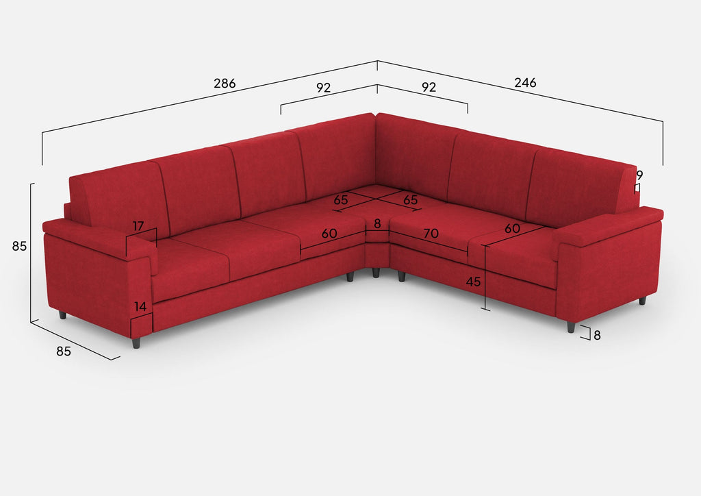 Divano Angolare 6 Posti 286x246x85 cm Marrak in Tessuto Rosso