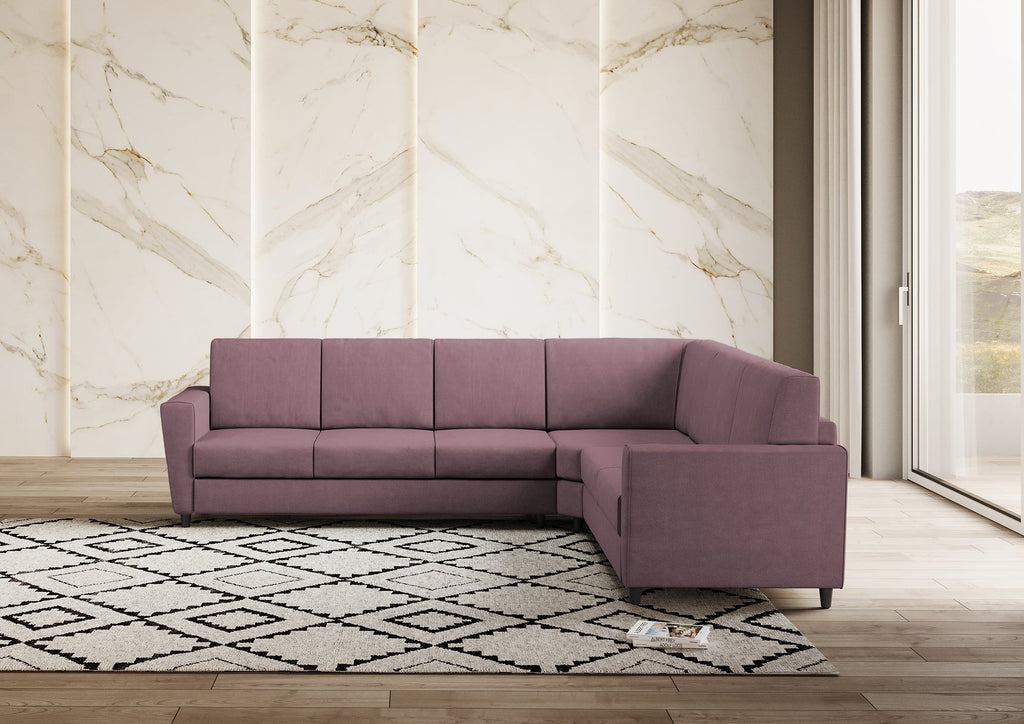 Divano Angolare 6 Posti 288x228x85 cm Yasel in Tessuto Prugna