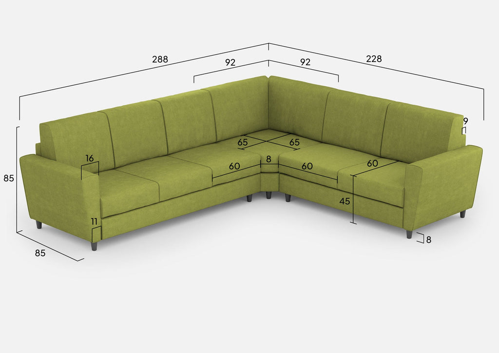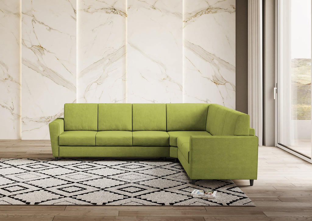 Divano Angolare 6 Posti 288x228x85 cm Yasel in Tessuto Verde