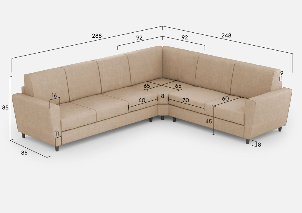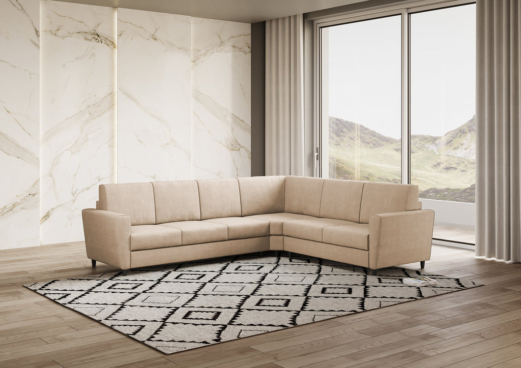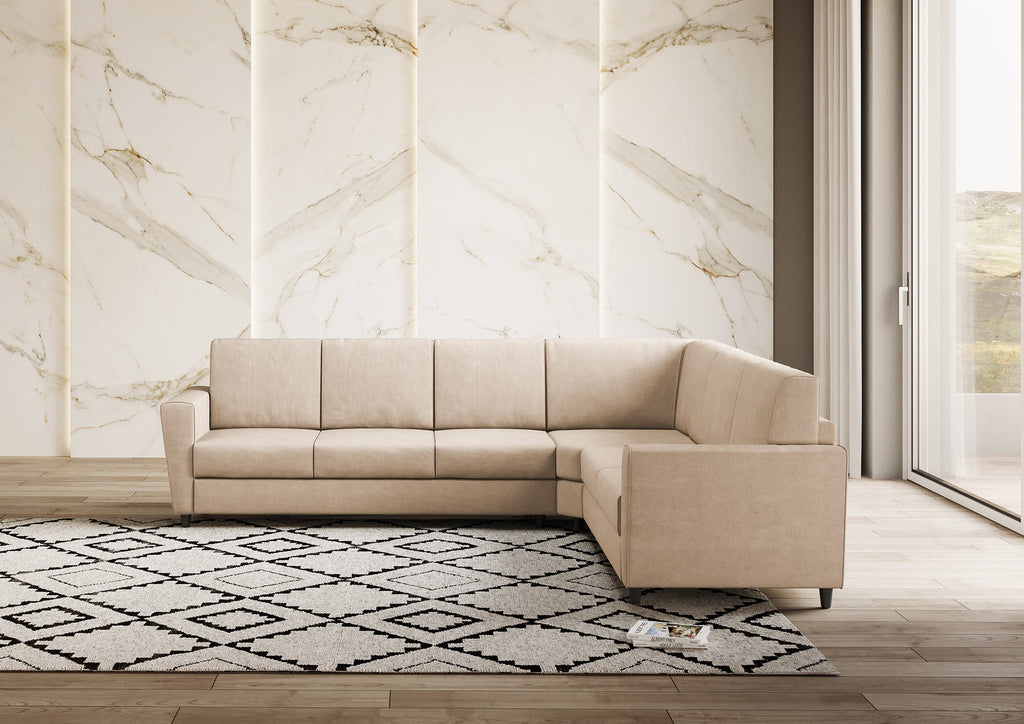 Divano Angolare 6 Posti 288x248x85 cm Yasel in Tessuto Beige