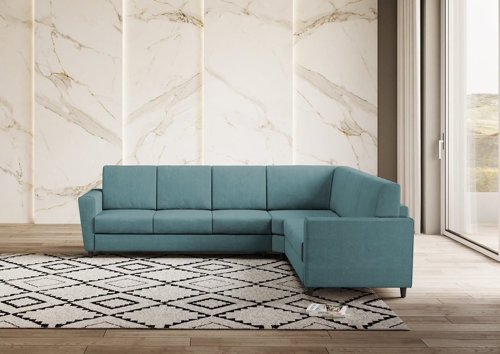 Divano Angolare 6 Posti 288x248x85 cm Yasel in Tessuto Petrolio