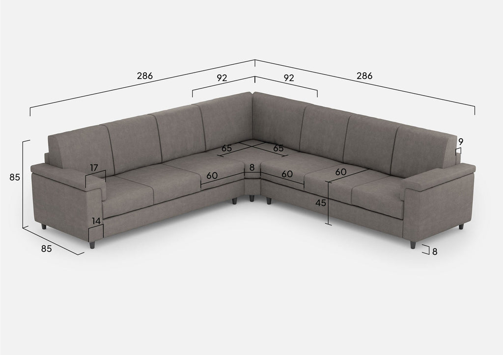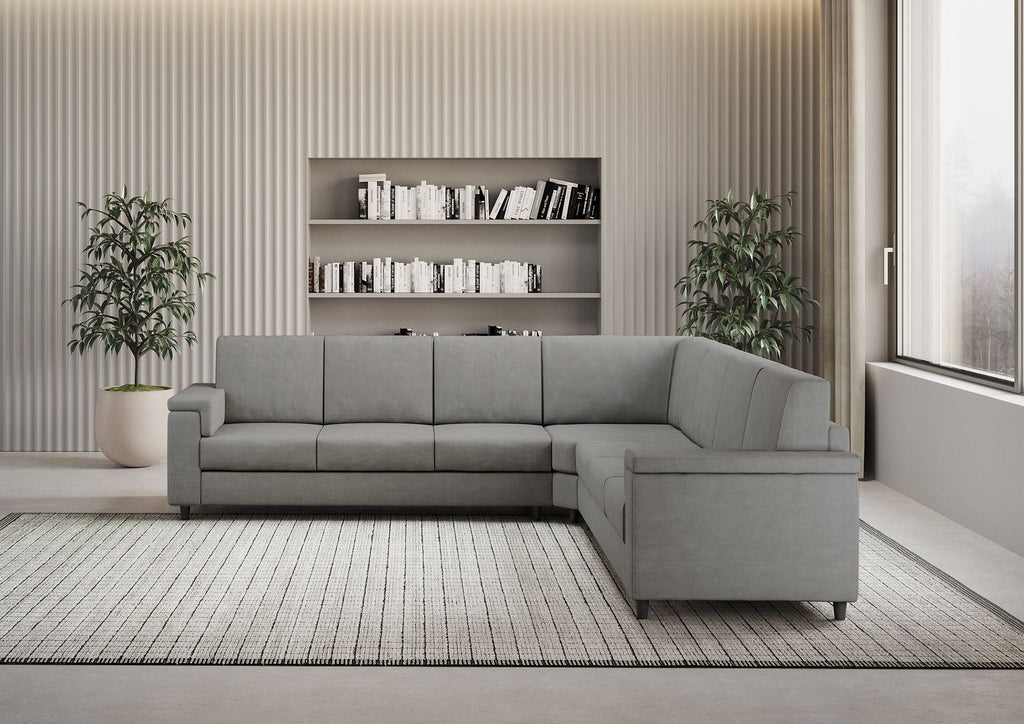 Divano Angolare 7 Posti 286x286x85 cm Marrak in Tessuto Grigio