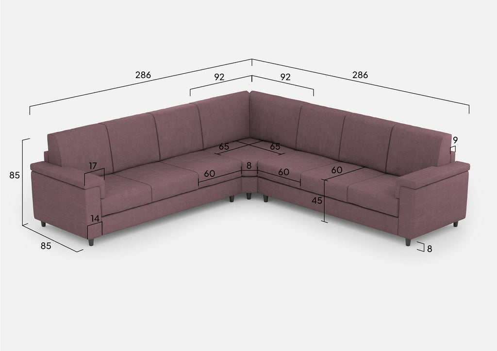 Divano Angolare 7 Posti 286x286x85 cm Marrak in Tessuto Prugna