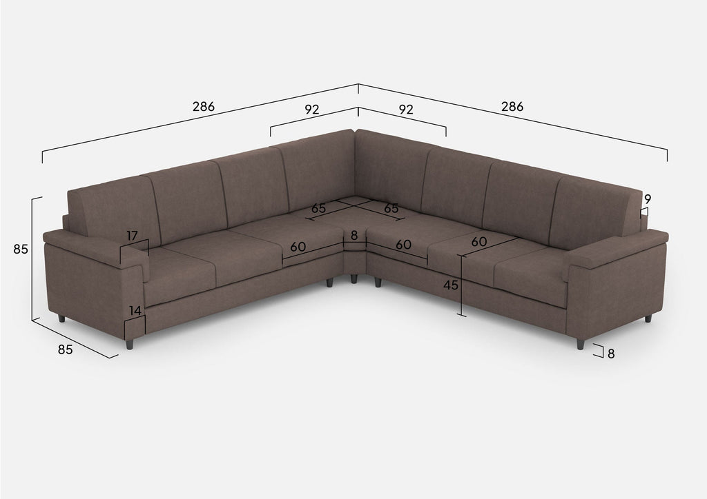 Divano Angolare 7 Posti 286x286x85 cm Marrak in Tessuto Talpa