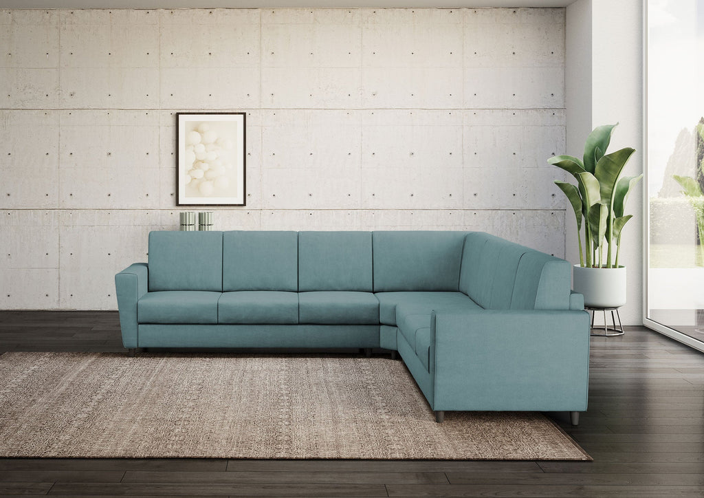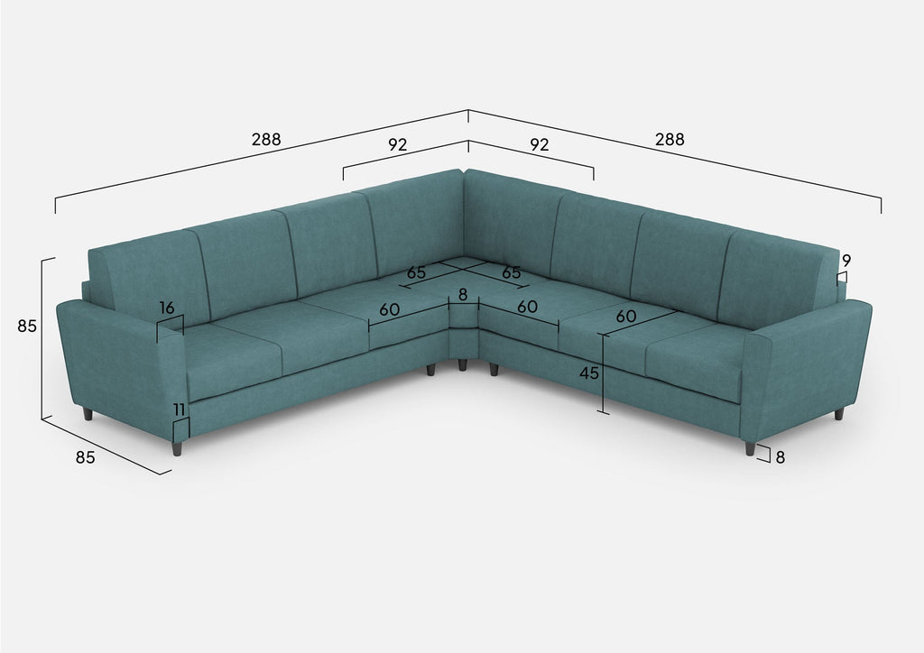 Divano Angolare 7 Posti 288x288x85 cm Yasel in Tessuto Petrolio