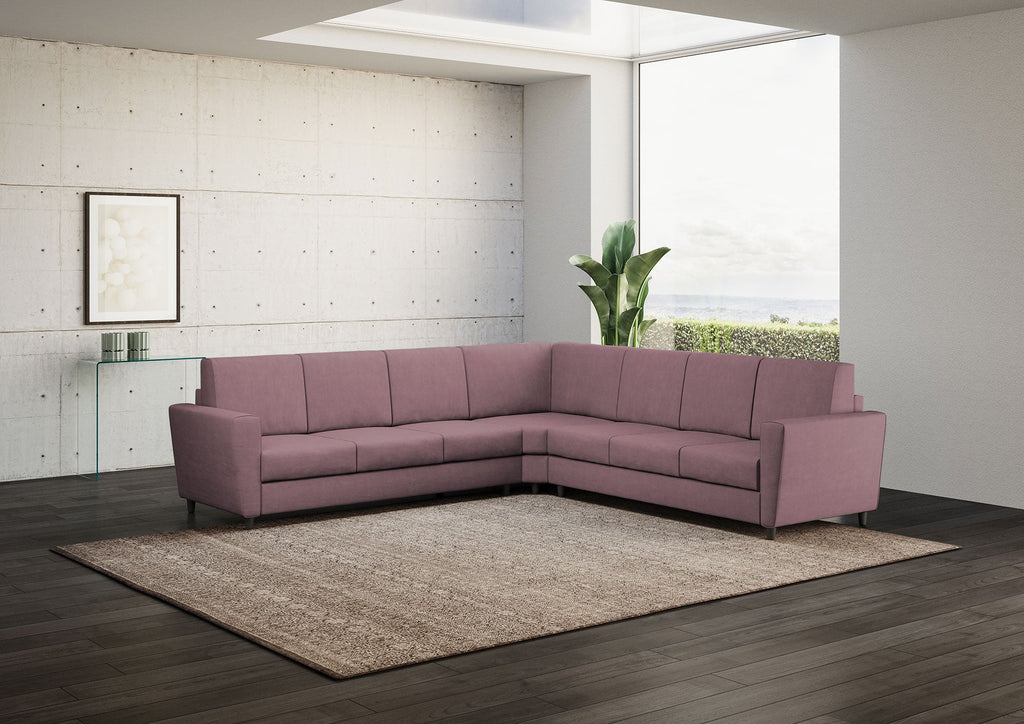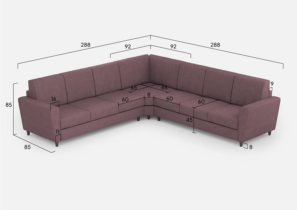 Divano Angolare 7 Posti 288x288x85 cm Yasel in Tessuto Prugna