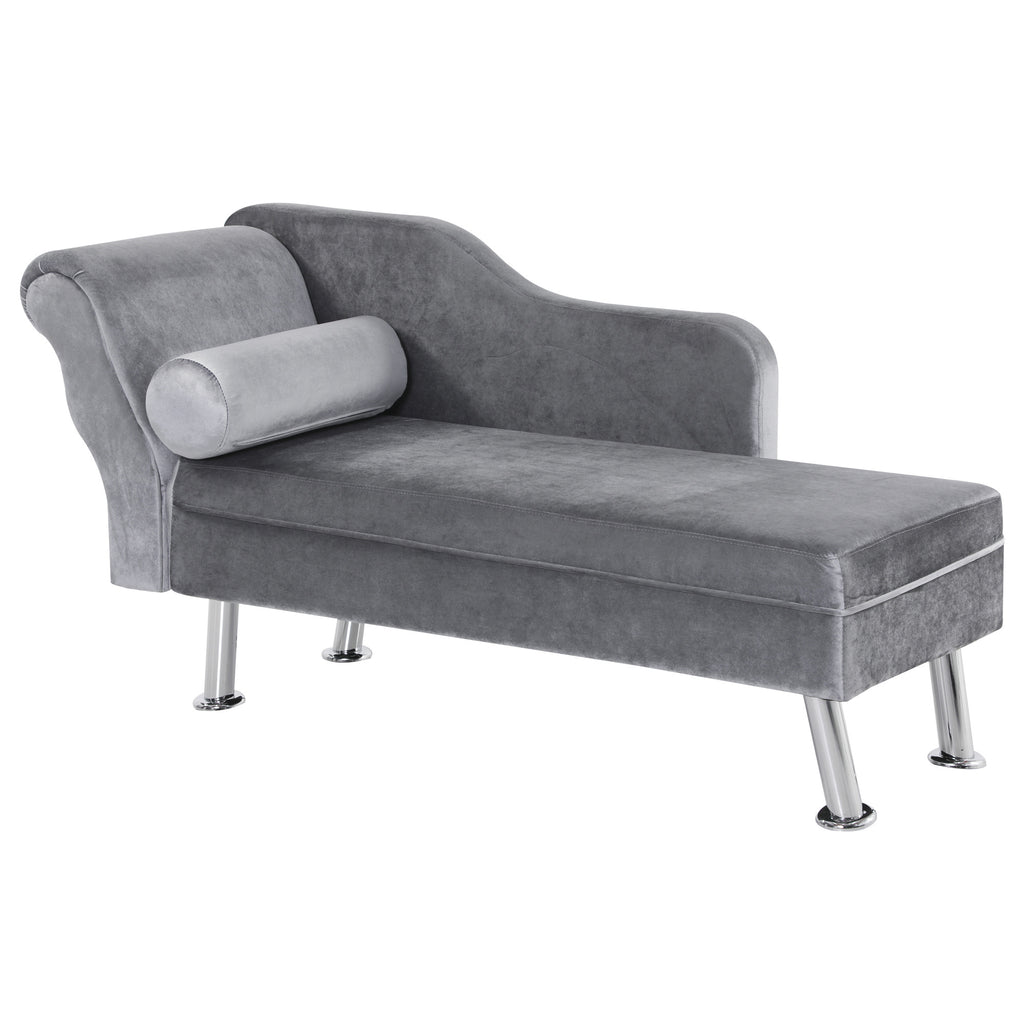 Chaiselongue-Sofa mit Kissen 160 x 56 x 75 cm aus Metall und grauem Stoff