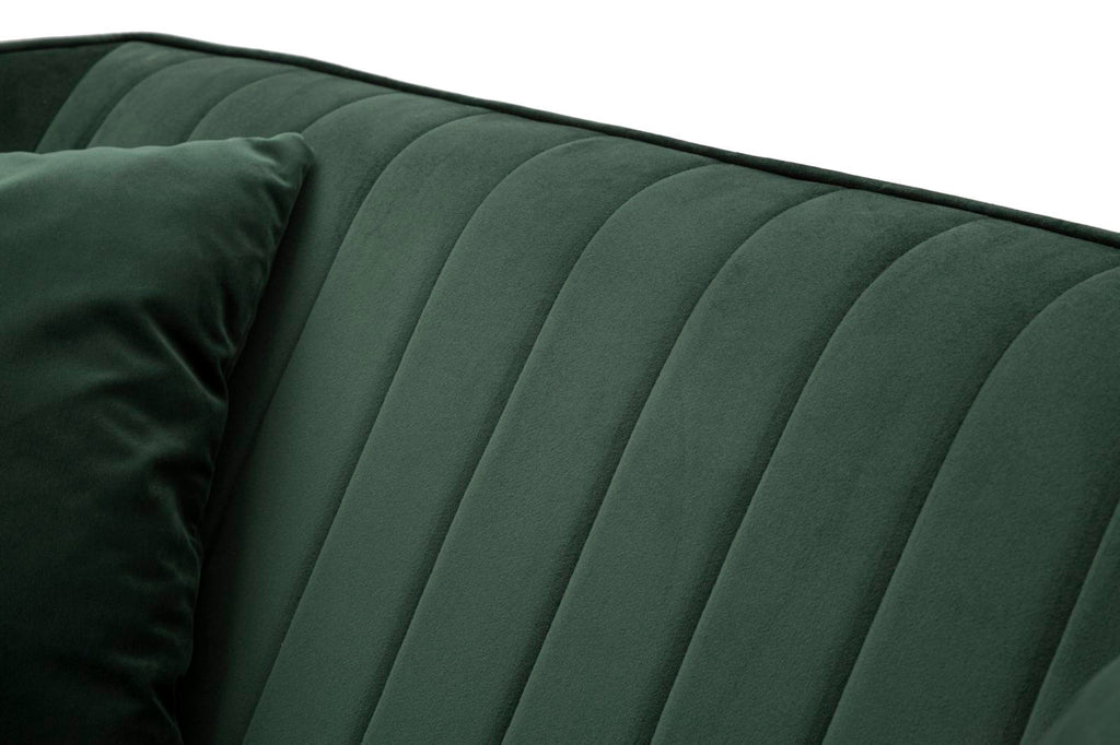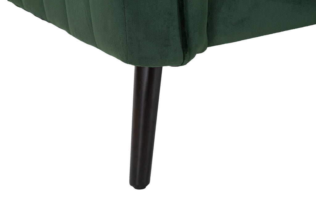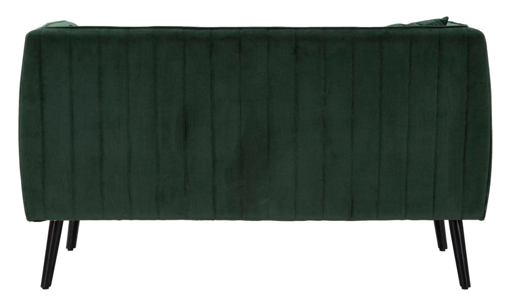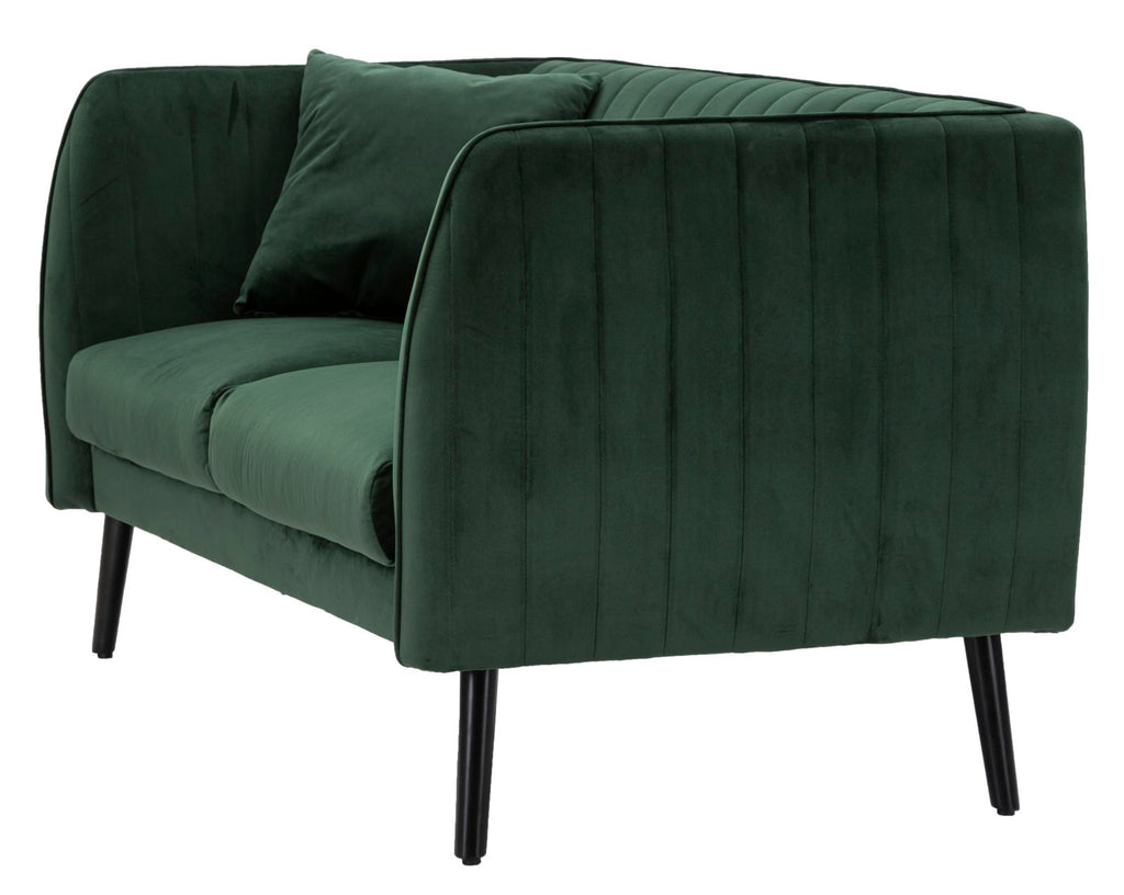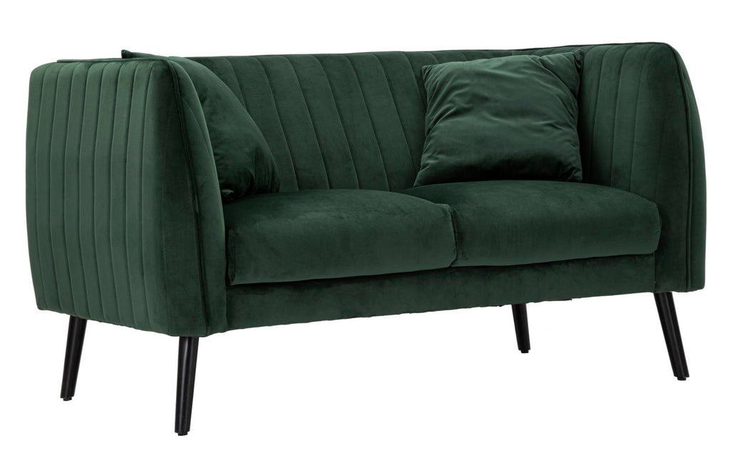 2-Sitzer-Sofa aus grünem Samt mit Holzbeinen und 2 Kissen. Majestätische Sitze mit abgerundeten Konturen, die durch die Eleganz von Samt verschönert werden. Ein Hauch von Klasse mit einem leichten Retro-Geschmack.