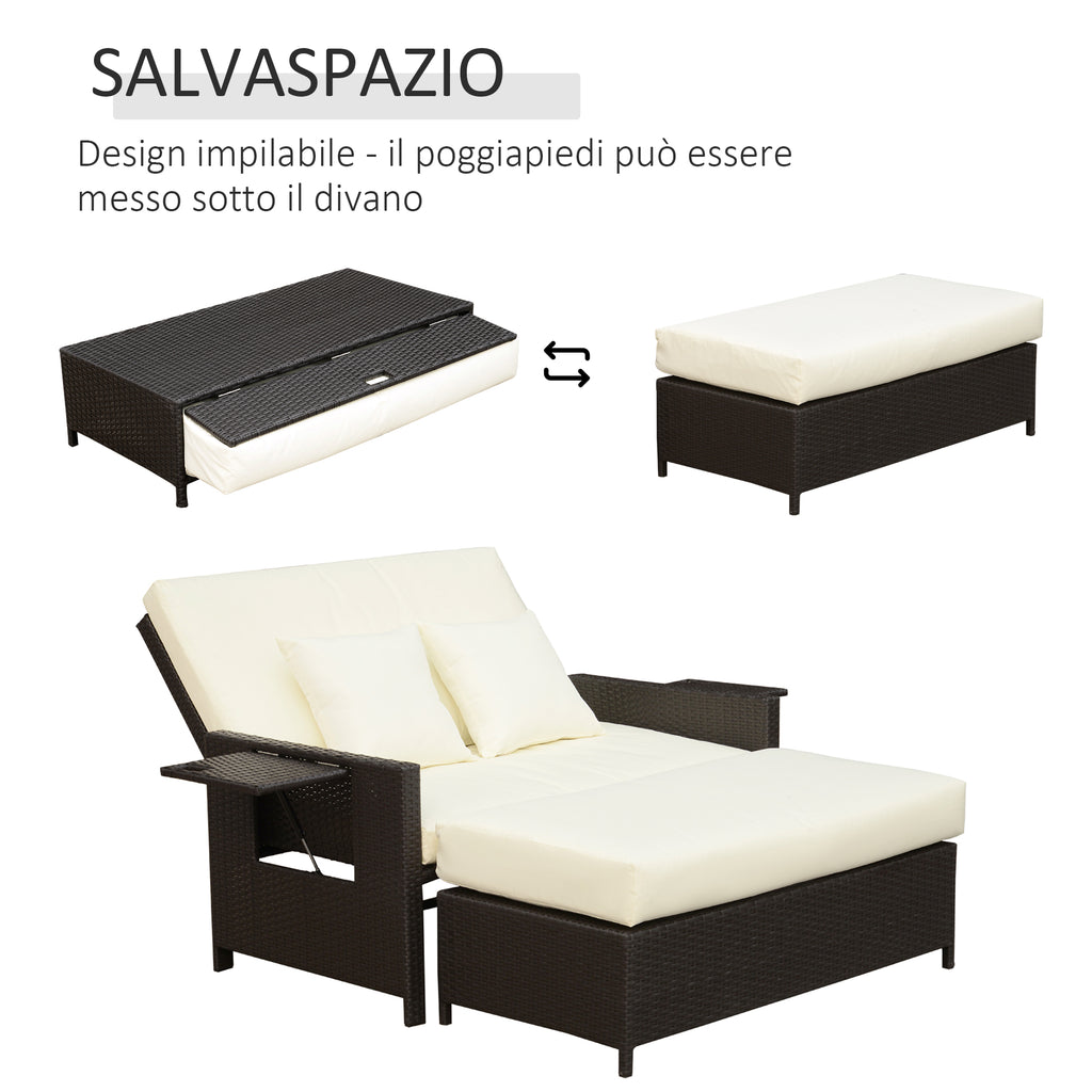 Es ist nie zu spät, den Garten Ihrer Träume zu gestalten! Unser Gartensofa ist perfekt für jeden Anlass, besonders wenn Sie Platzprobleme haben. Das Set besteht aus zwei Teilen: einem Sofa und einer passenden Bank, die Sie unter den Sofasitz stellen oder herausziehen können, um Ihre Gäste willkommen zu heißen. Der Rahmen der Möbel besteht aus widerstandsfähigem Metall, während der Bezug aus synthetischem Rattan besteht, einem eleganten Material, wasserdicht und perfekt für den Außenbereich.