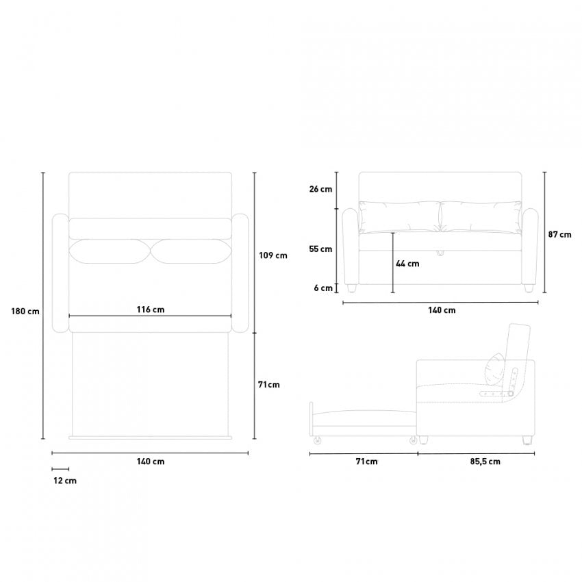- Maße Sofa: 140 x 85,5 x 87 cm (Breite, Tiefe, Höhe)