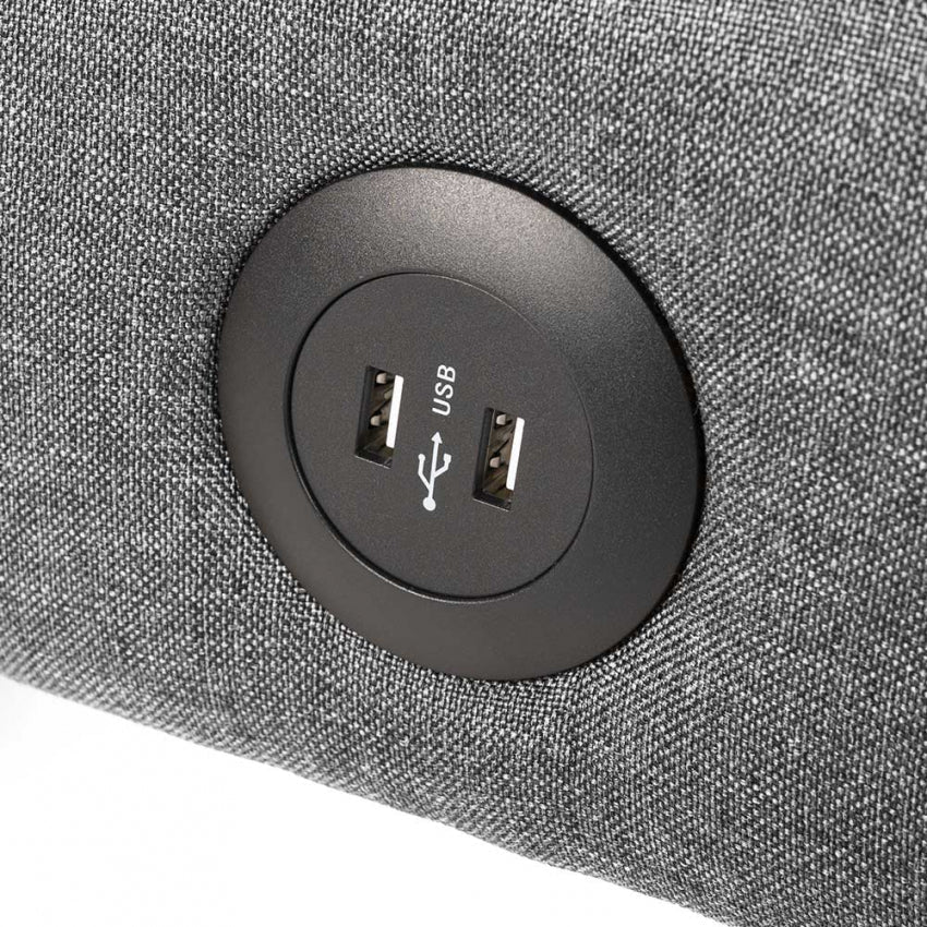 - Eingebaute USB-Buchse mit zwei Ausgängen an der Seite des Sofas