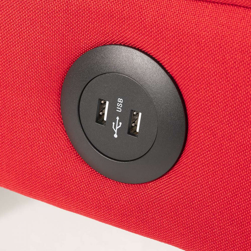 - Eingebaute USB-Buchse mit zwei Ausgängen an der Seite des Sofas