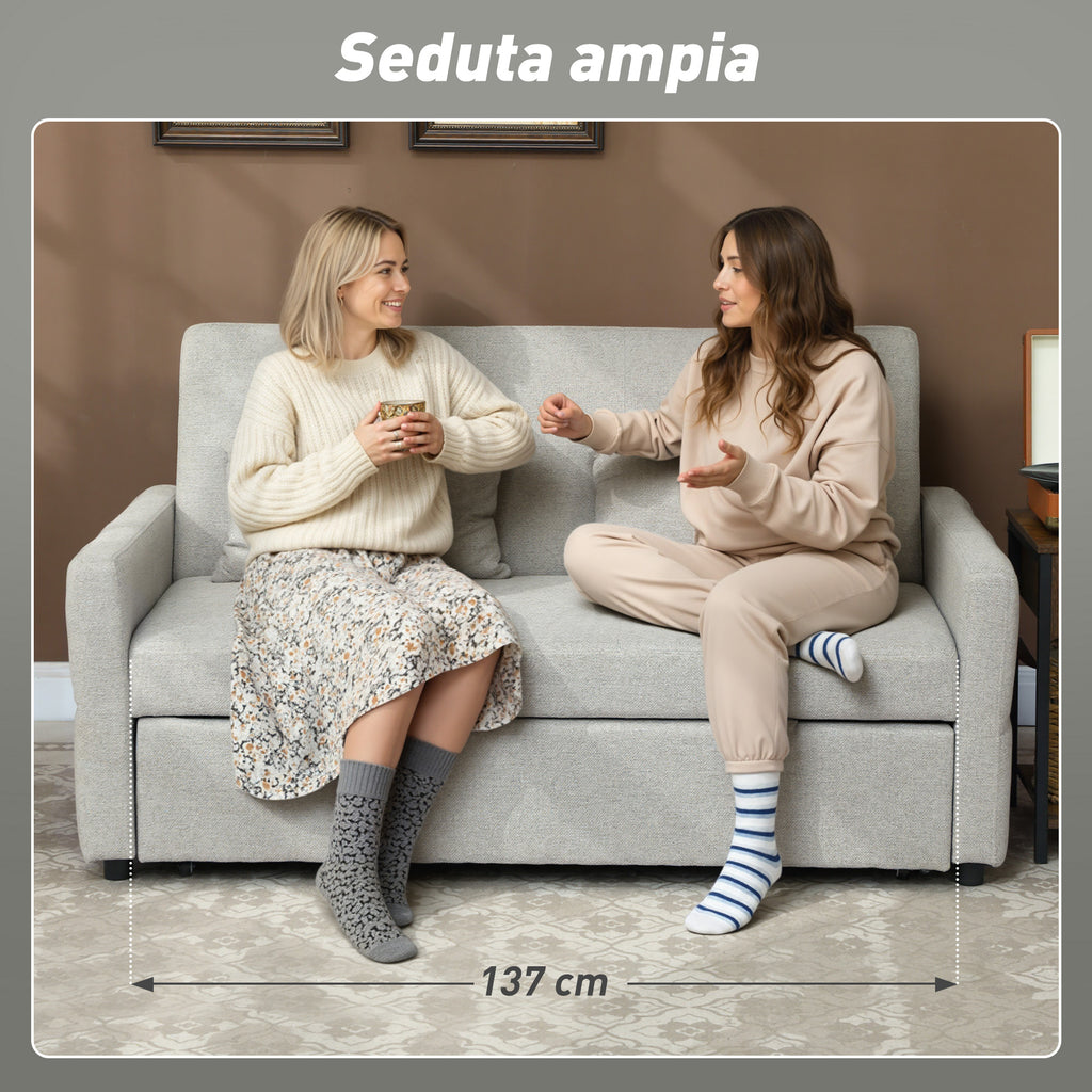 • COMODO E SOSTENITIVO: Con una schiuma ad alta resilienza e densità (14.5 cm di spessore), rivestimento in tessuto effetto lino traspirante, seduta larga 137 cm e due cuscini, questo divano letto matrimoniale relax assicura un eccellente comfort e supporto