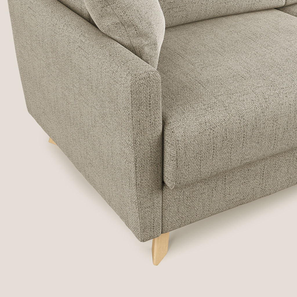 Il divano letto è una soluzione versatile e pratica per arredare il proprio spazio. Disponibile in diverse misure, offre la possibilità di adattarsi a qualsiasi esigenza di spazio e design. Realizzato con tessuto impermeabile ed antimacchia, il divano è facile da pulire e rimane sempre in ottime condizioni. Con le sue linee contemporanee, il divano è elegante e leggero, grazie ai piedini in legno naturale e ai braccioli dalle proporzioni ottimali. Adatto per ambienti contemporanei e moderni, può anche essere inserito in contesti ispirati alla natura o dalle linee scandinave. Prodotto al 100% in Italia, è sinonimo di qualità e artigianalità.