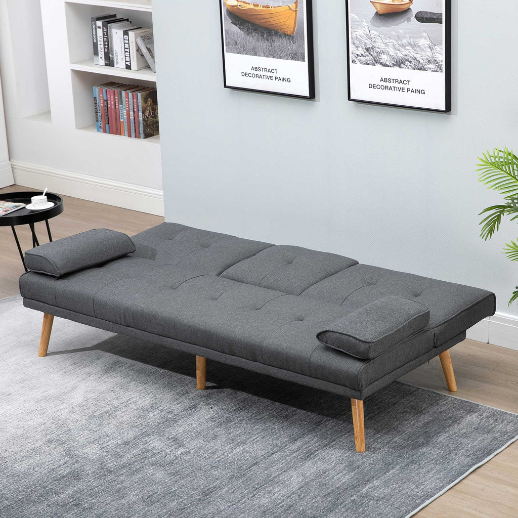 Divano Letto 3 Posti 181x77x72 cm in Tessuto Effetto Lino Grigio scuro