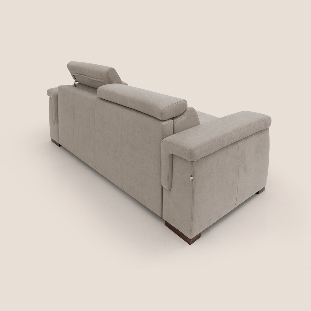 Il divano letto si distingue per il design dei suoi braccioli, che non solo conferiscono un aspetto estetico elegante, ma offrono anche un comodo supporto per la testa durante i momenti di relax. La superficie per dormire è rinforzata da una robusta rete elettrosaldata che contiene un materasso comfort alto 18 cm, garantendo un riposo di qualità. Il materasso Height Comfort è solido, funzionale e in grado di sopportare le sollecitazioni derivanti dall'apertura e chiusura del meccanismo del divano. Inoltre, grazie al suo materiale ad alta densità con fascia traspirante 3D, offre comfort, praticità ed eleganza al divano.