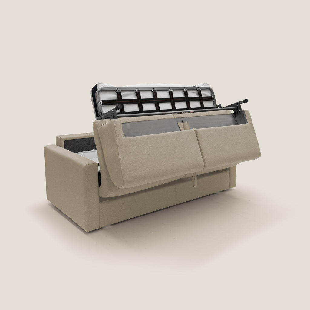 - Divano letto matrimoniale in tessuto impermeabile ed antimacchia, ideale per piccoli spazi