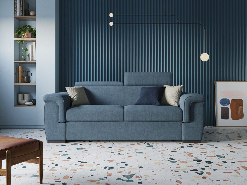 - Giunone è un divano letto con braccioli che offrono comodo appoggio per il capo