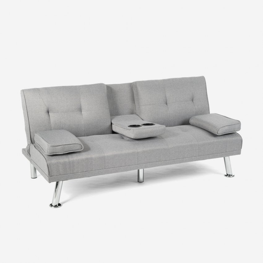 Ideal nicht nur zum Sitzen, die Rückenlehne des Sofas lässt sich in mehrere Positionen neigen und dank des exklusiven Clic-Clac-Mechanismus lässt es sich mit wenigen Handgriffen in ein Einzelbett verwandeln, was es zum Beispiel sehr praktisch macht , einer der Liebsten für eine Nacht bleiben möchte oder für einen Freund Ihrer Kinder, der den Abend bei Ihnen zu Hause verlängern möchte. Die zwei abnehmbaren Armlehnen sorgen für zusätzlichen Komfort und können als bequeme Schlafkissen verwendet werden. Darüber hinaus offenbart der Mittelsitz, wenn er abgesenkt ist, einen praktischen Cupholder-Tisch, auf dem Sie Getränke oder Snacks griffbereit abstellen können, ohne auf eine Minute Ihres Fernsehprogramms verzichten zu müssen, während Sie bequem sitzen bleiben.