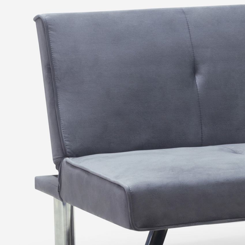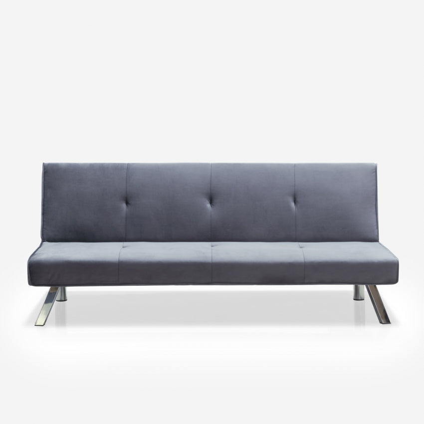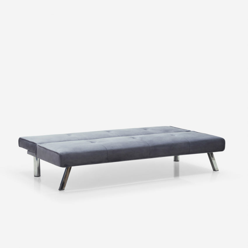 Dieses Schlafsofa wird von der bekannten Marke Modus Sofà aus hochwertigen Materialien hergestellt und verfügt über einen stabilen Holzrahmen und solide Metallfüße, die der Struktur Stabilität verleihen und es ihr ermöglichen, der Belastung standzuhalten, ohne übermäßige Belastungen zu erleiden. Äußerlich ist das Sofa mit einem weichen, samtigen Stoff bezogen, der sich nicht nur angenehm anfühlt und sieht, sondern auch sehr kratz- und abriebfest ist und eine hervorragende Haltbarkeit im Laufe der Zeit gewährleistet. Der Sitz wird durch eine großzügige Schicht ergonomisch und bequem gemacht Schaum der ersten Wahl. Mit wenigen Handgriffen lässt sich die Rückenlehne mithilfe des intuitiven Klick-Klack-Öffnungsmechanismus umklappen und das Sofa in ein Bett verwandeln, um einen zusätzlichen Platz zu schaffen, an dem Sie je nach persönlichen Bedürfnissen einen Freund beherbergen können oder gewohnheitsmäßig schlafen.
