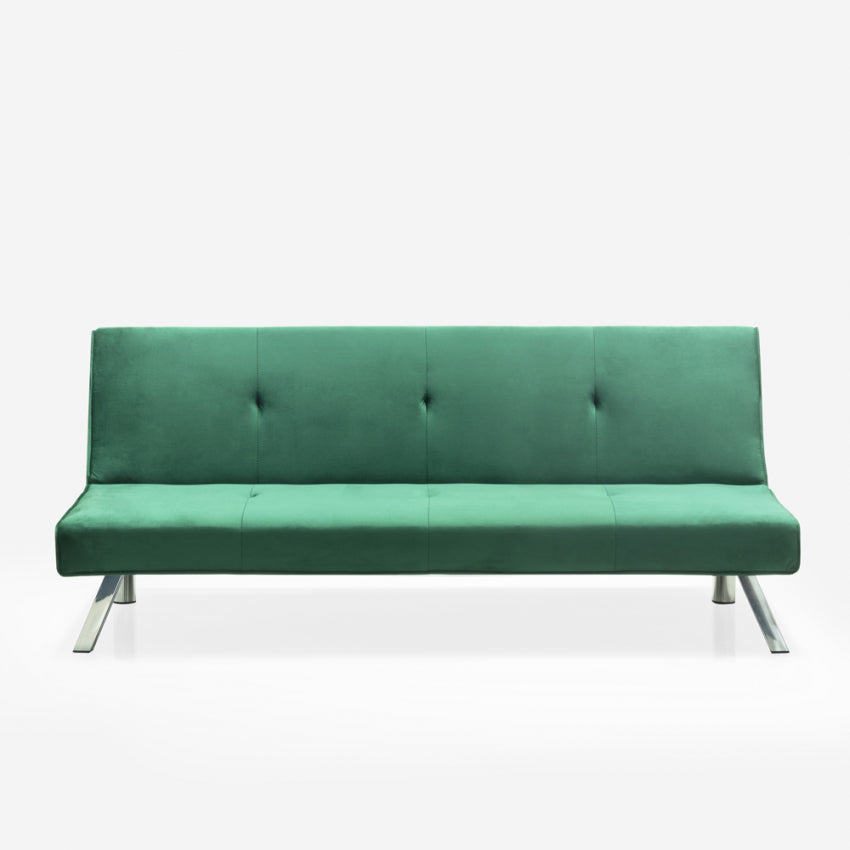 Dieses Schlafsofa wird von der bekannten Marke Modus Sofà aus hochwertigen Materialien hergestellt und verfügt über einen stabilen Holzrahmen und solide Metallfüße, die der Struktur Stabilität verleihen und es ihr ermöglichen, der Belastung standzuhalten, ohne übermäßige Belastungen zu erleiden. Äußerlich ist das Sofa mit einem weichen, samtigen Stoff bezogen, der sich nicht nur angenehm anfühlt und sieht, sondern auch sehr kratz- und abriebfest ist und eine hervorragende Haltbarkeit im Laufe der Zeit gewährleistet. Der Sitz wird durch eine großzügige Schicht ergonomisch und bequem gemacht Schaum der ersten Wahl. Mit wenigen Handgriffen lässt sich die Rückenlehne mithilfe des intuitiven Klick-Klack-Öffnungsmechanismus umklappen und das Sofa in ein Bett verwandeln, um einen zusätzlichen Platz zu schaffen, an dem Sie je nach persönlichen Bedürfnissen einen Freund beherbergen können oder gewohnheitsmäßig schlafen.