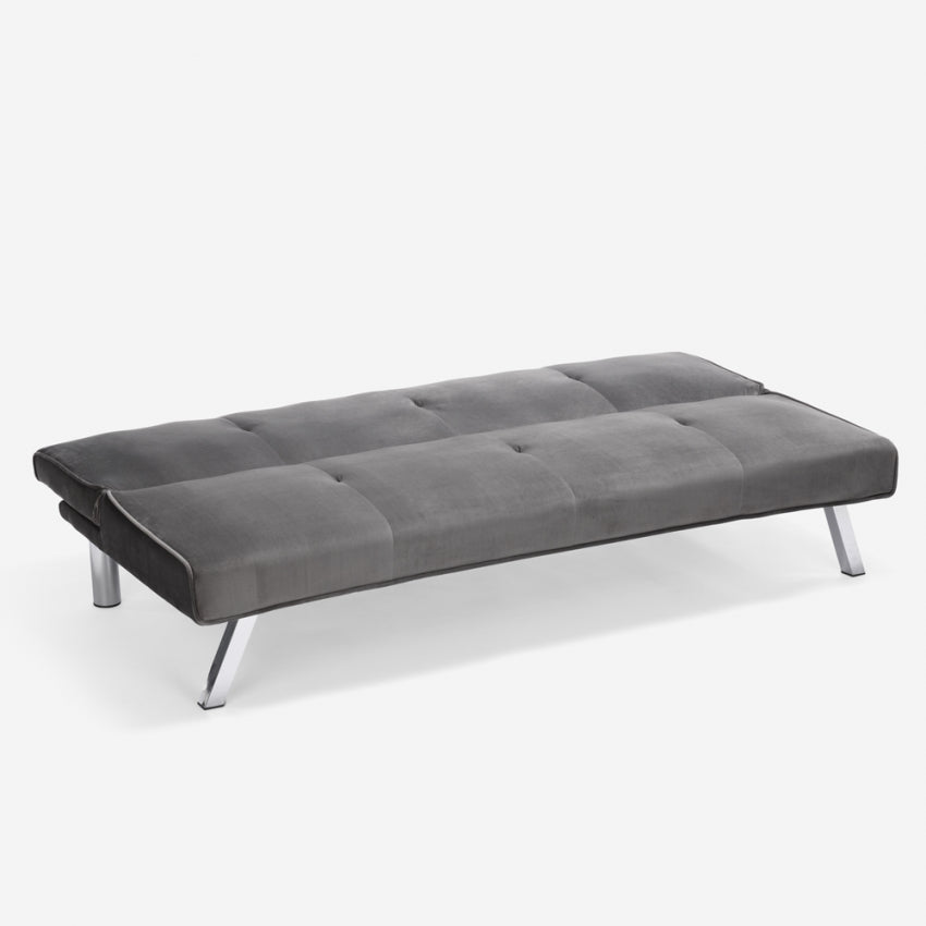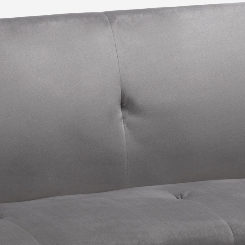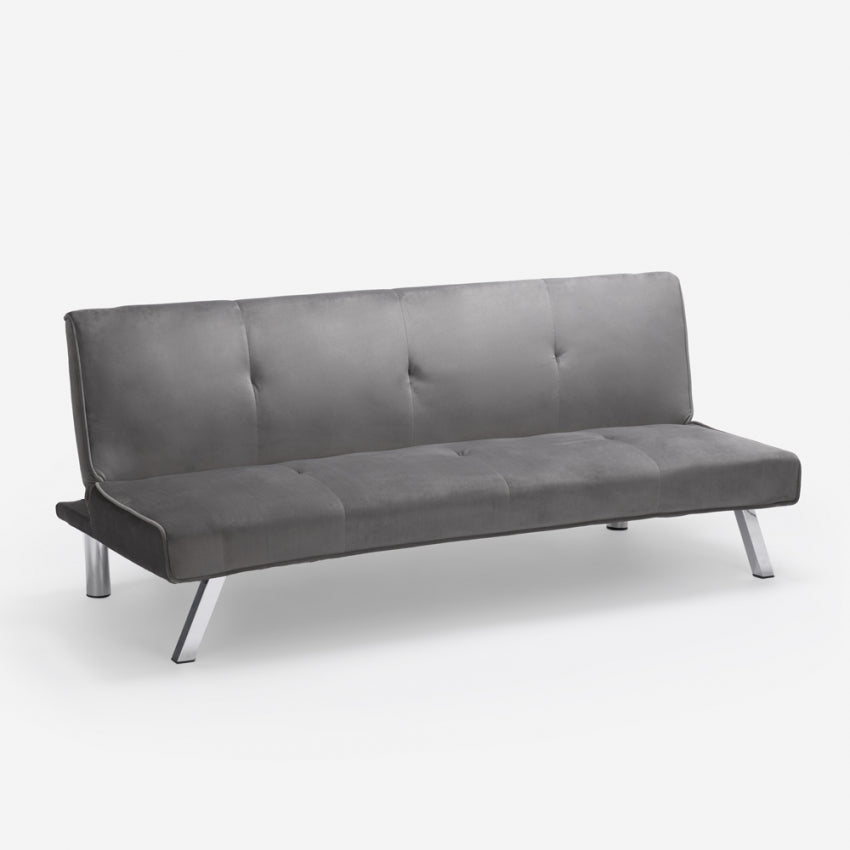 Explicitus ist ein 2-in-1-Sofa, das sich durch die weiche Polyurethan-Polsterung und die samtige Polsterung auszeichnet, die durch Knöpfe an der Rückenlehne und eine weiße Umfangskordel kontrastiert wird, die alle von einem stabilen Eukalyptusholzrahmen getragen werden. Seine vielseitigen Abmessungen in Kombination mit dem trendigen Design machen es zu einem schlichten Sofa mit zeitlosem Stil, ideal für ein nordisch inspiriertes Wohnzimmer, aber auch für ein Wohnzimmer mit klassischeren Tönen, das sich perfekt in ein Interieur mit kleinen und großen Räumen einfügt Wohnzimmer. Neben einer bequemen Sitzgelegenheit für 3 Personen verwandelt sich das Sofa durch einfaches Umklappen der Rückenlehne in ein bequemes Einzelbett, das als Alltagsbett genutzt werden kann, wenn beispielsweise wenig Platz zur Verfügung steht, oder als Zustellbett für Gästezimmer oder Ferienwohnung. Die Struktur wird von widerstandsfähigen Metallfüßen getragen, die eine hervorragende Stabilität garantieren, wenn das Sofa als Bett verwendet wird.