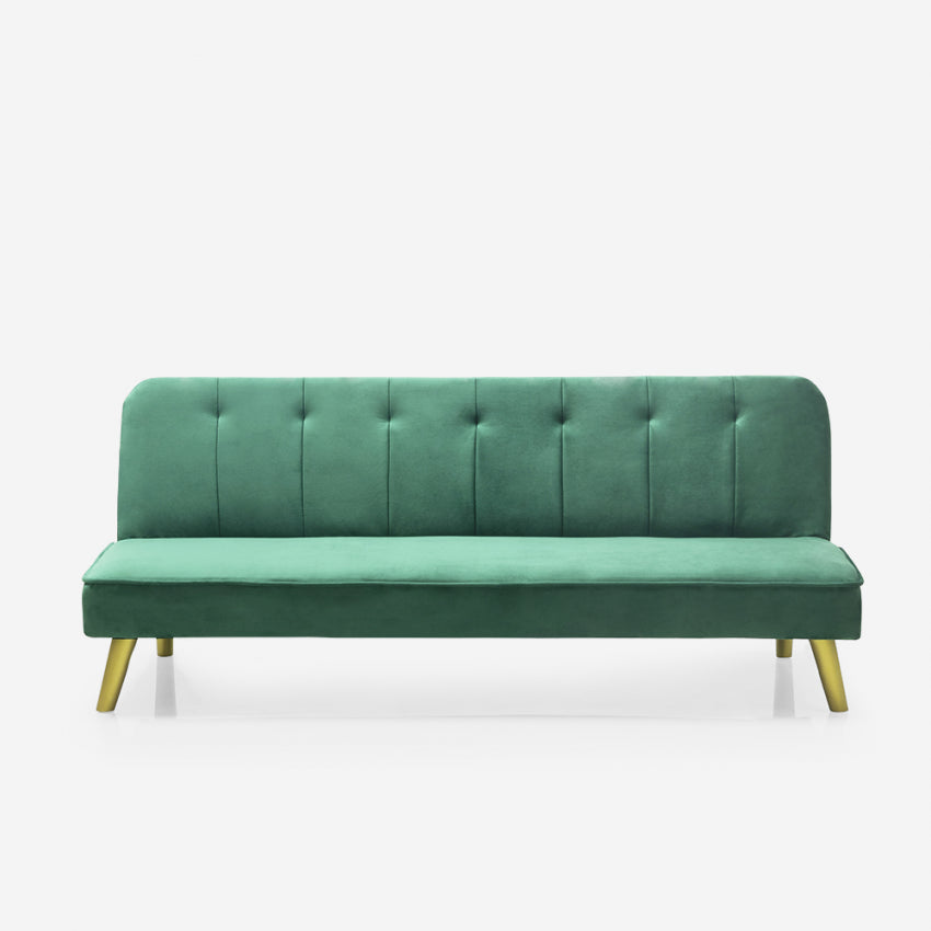 Dieses Schlafsofa der bekannten Spezialmarke Modus Sofà ist perfekt für Privathaushalte, Geschäfte oder Büros und verfügt über einzigartige Merkmale, die es deutlich von den anderen Modellen auf dem Markt unterscheiden, vor allem die hohe Qualität der bei der Herstellung verwendeten Materialien. Die innere Struktur und die Holzfüße sorgen für hervorragende Stabilität und eine bemerkenswerte Fähigkeit, das Gewicht der Insassen ohne übermäßige Belastung zu tragen. Die Polsterung aus weichem, samtigem Stoff unterstreicht die ästhetische Gesamtform des Sofas und macht es äußerst angenehm für Auge und Haptik, während die dicke Schaumstoffpolsterung erster Wahl einen ergonomischen und bequemen Sitz garantiert. Durch den praktischen Klick-Klack-Öffnungsmechanismus ist es möglich, die Rückenlehne zu neigen und umzuklappen, um das Sofa in ein Bett zu verwandeln und so einen zusätzlichen Platz zu schaffen, an dem ein Gast je nach Bedarf übernachten oder normal schlafen kann.