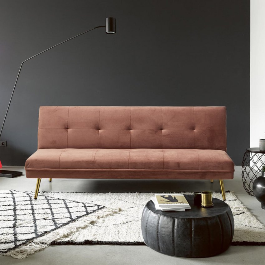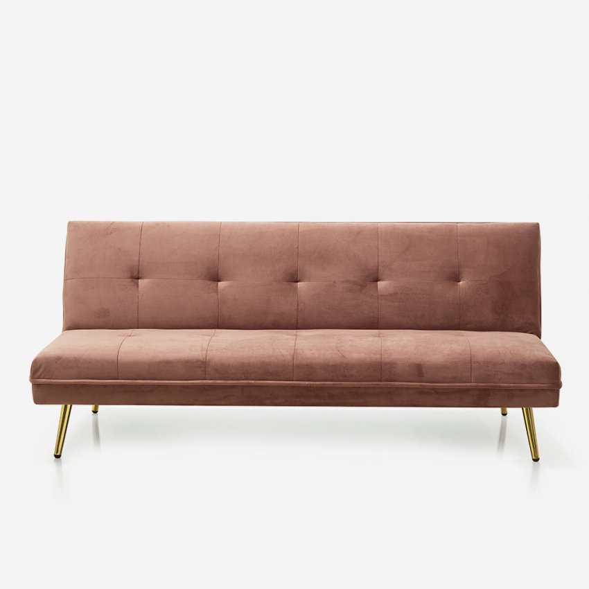 Padded ist ein Schlafsofa mit einem bequemen und weichen Aussehen, das sich durch einfache Formen auszeichnet, aber sorgfältig entworfen wurde, um einen äußerst bequemen Sitz zu erhalten. Die aktuellen Farben, die essentielle Form, die goldenen Füße mit hervorragender Stabilität und die auf den Stoff aufgebrachte Verarbeitung im Capitonné-Stil machen es zu einem Sofa mit zeitlosem Design, ideal für ein nordisch inspiriertes Wohnzimmer und für ein Wohnzimmer mit zeitgenössischen Tönen. Der moderne und lineare Stil macht es sicherlich vielseitig, aber dieses Sofa wird vor allem wegen seiner extremen Funktionalität geschätzt: Tatsächlich lässt sich die Rückenlehne durch einen einfachen Klick-Klack-Mechanismus umklappen, um einen weichen und einladenden idealen Schlafplatz zu haben ein paar Augenblicke für plötzliche Besuche. Der Rahmen besteht aus massivem Eukalyptusholz, sehr widerstandsfähig und langlebig, vollständig mit hochdichtem Schwamm gepolstert und mit gestepptem Samt bezogen, der in mehreren Farben erhältlich ist, die sich perfekt mit jeder Art von Möbeln harmonieren.