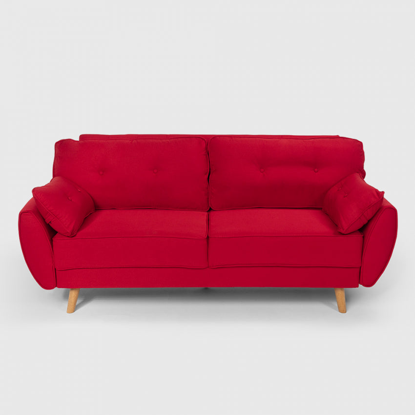 Wirklich nützlich für diejenigen, die gerne Gäste haben und für diejenigen, die wenig Platz zur Verfügung haben, wird das Sofa Fortaleza die Lieblingsecke nicht nur für die tägliche Entspannung sein. Um die Ruhemomente zu verlängern, verwandelt sich das Sofa dank der praktischen Klick-Klack-Mechanik in ein bequemes Zusatzbett: Einfach die Rückenlehne umklappen und im Handumdrehen steht Ihnen ein bequemes Bett zur Verfügung, wenn Sie einen Freund unterbringen möchten oder Verwandte für die Nacht. Auch die gepolsterte Sitzfläche sowie die Rückenlehne mit geknöpften Tuftkissen sorgen für grenzenlosen Komfort und ermöglichen sanftes Entspannen zu jeder Tageszeit. Die innere Struktur des Sofas besteht aus Massivholz, ebenso wie die Füße selbst, robust und schräg, die nicht nur an Möbel im nordischen Stil erinnern, sondern auch maximale Stabilität bieten.