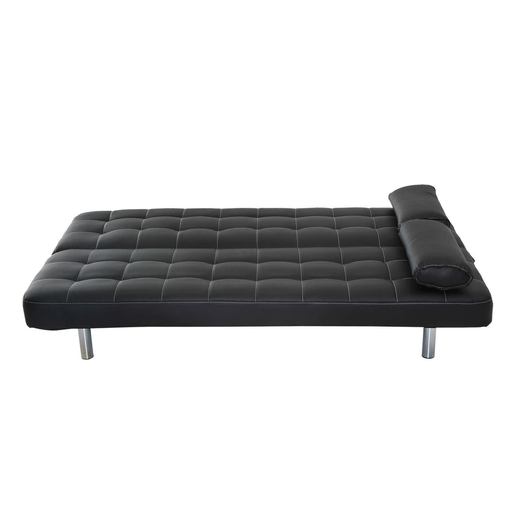 Schlafsofa aus schwarzem Kunstleder mit 2 Kissen 180 x 94 x 88 cm