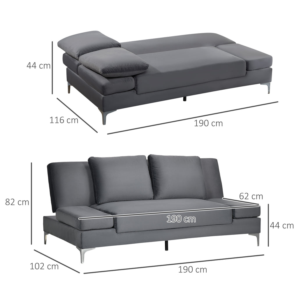 Doppelschlafsofa 190 x 102 x 82 cm aus Polyester und grauem Metall