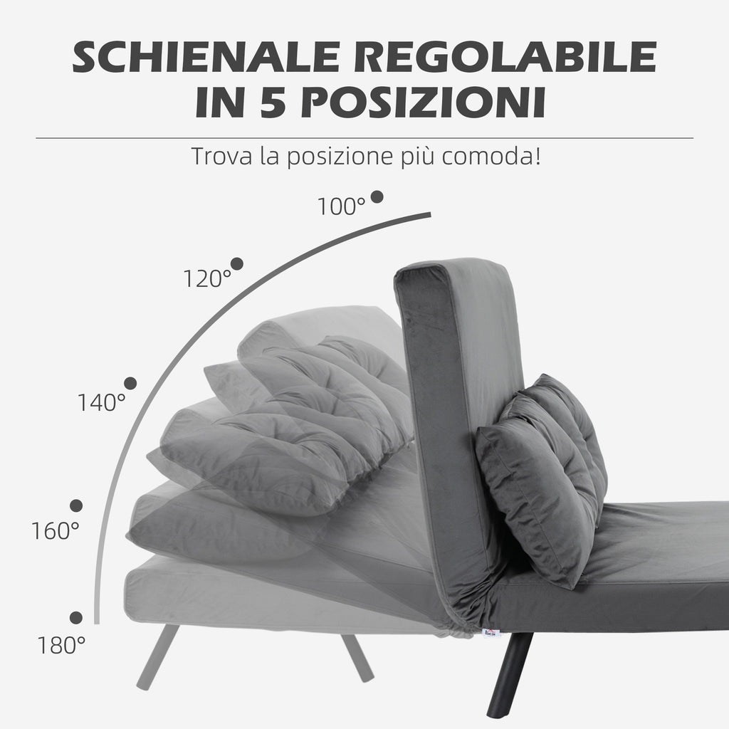 Divano Letto Schienale Regolabile 102x73x81 cm in Velluto Grigio Scuro