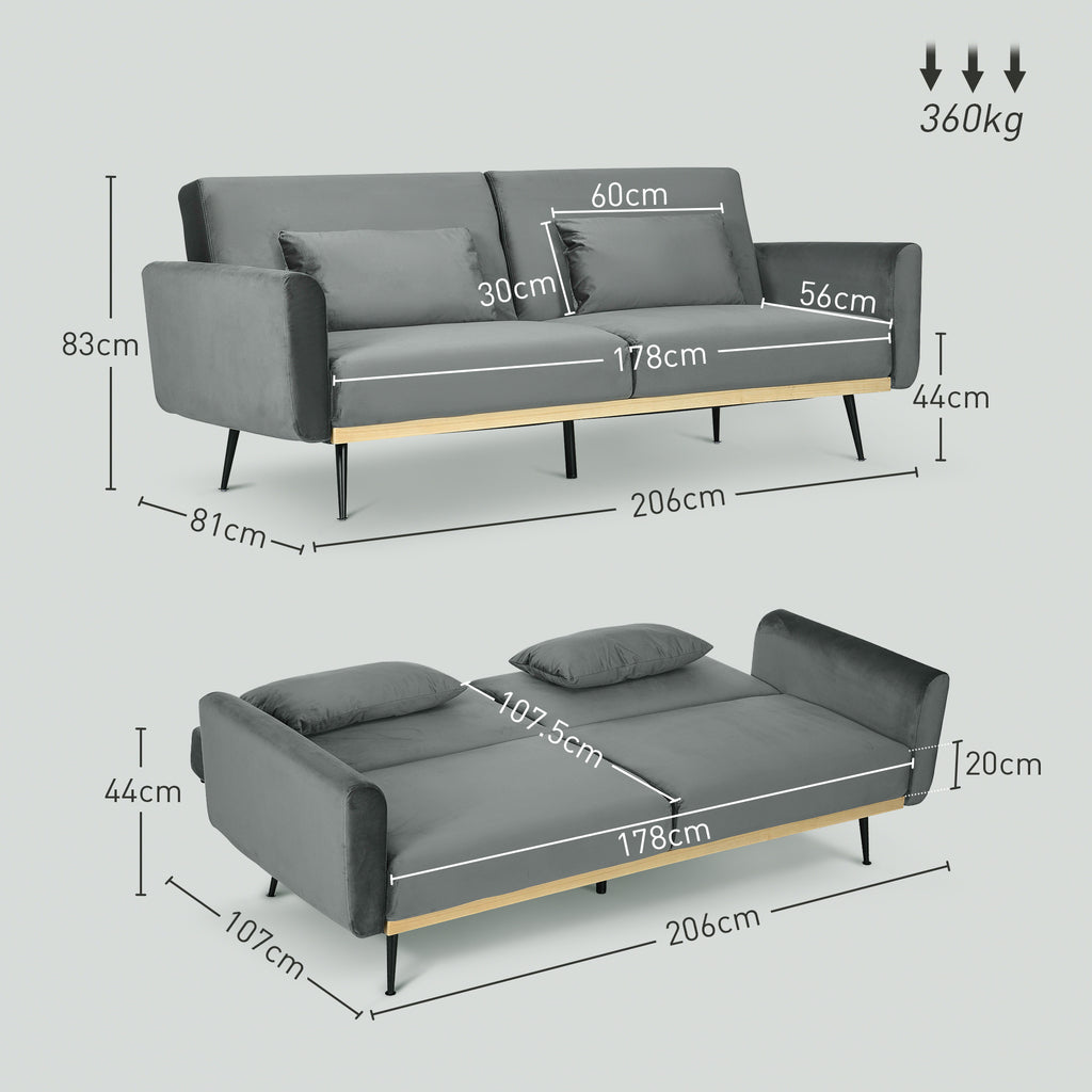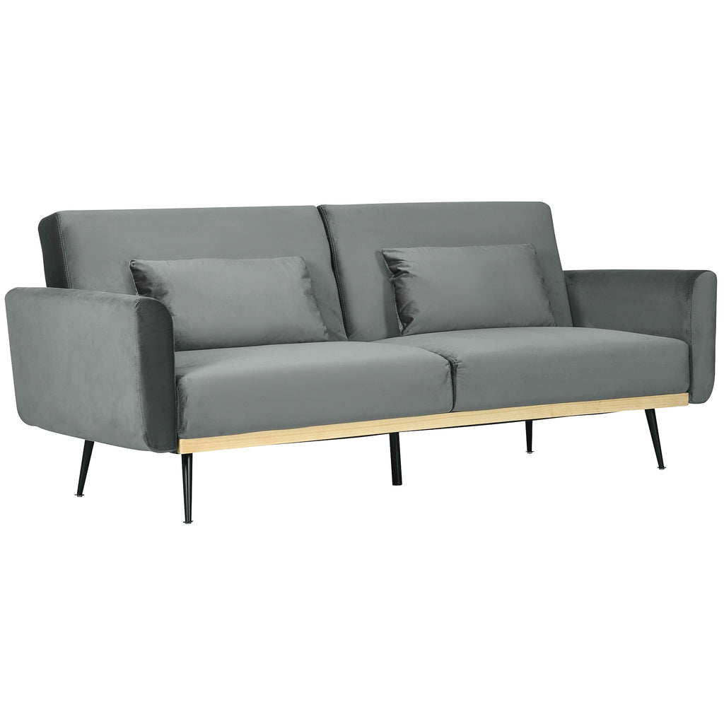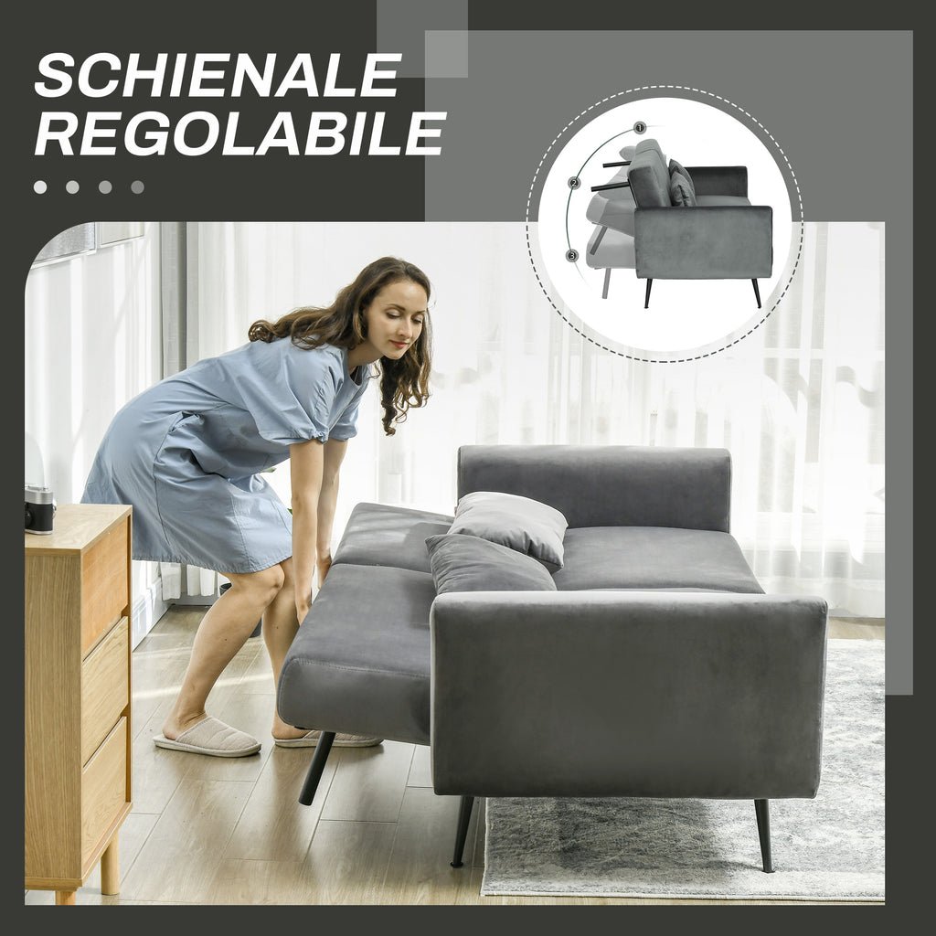Divano Letto Singolo Clic Clac 206x81x83 cm in Tessuto Effetto Velluto con 2 Cuscini Grigio