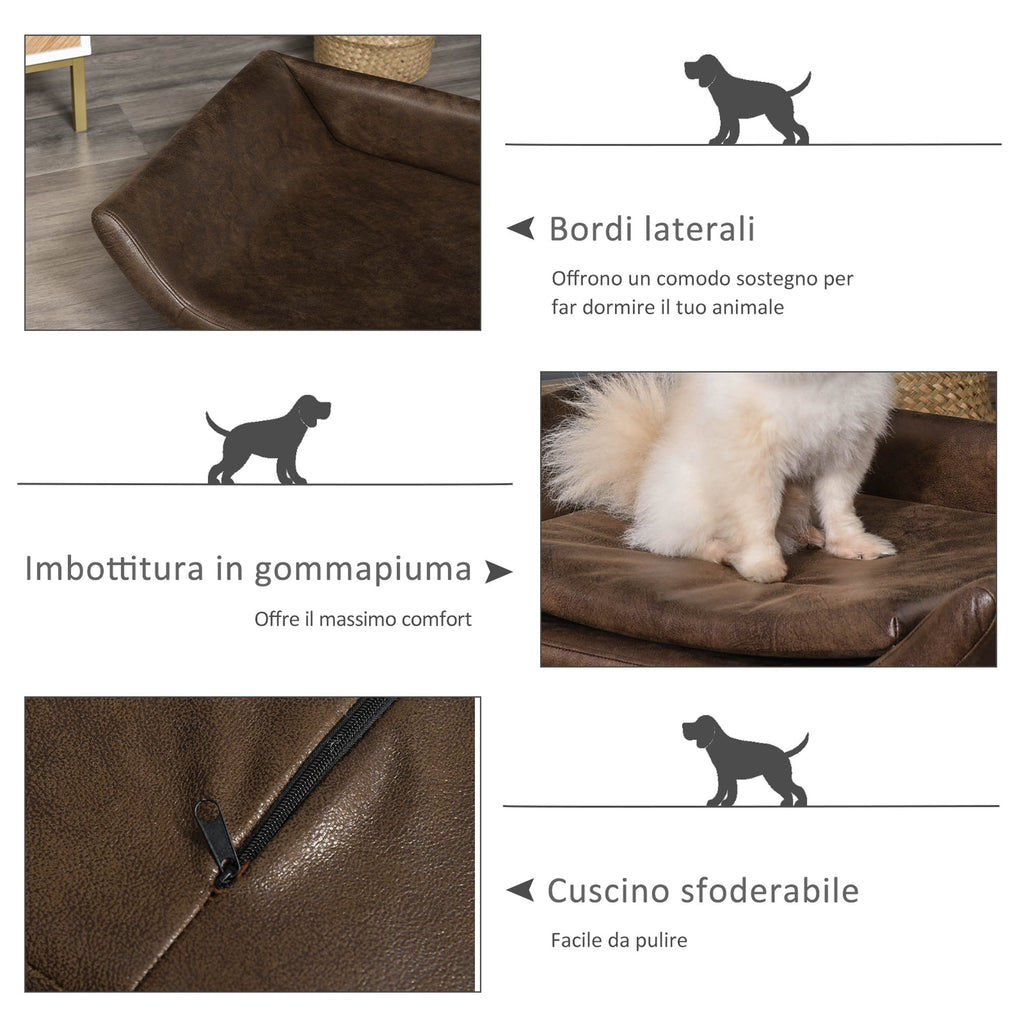 Sofa für Hunde und Katzen gepolstert 73x53x21 cm in braunem Kunstleder