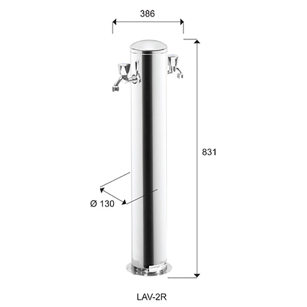 Technische Merkmale Innen- und Außenfußwaschanlage mit 2 ATI-Wasserhähnen LAV 2R Duschen aus eloxiertem Edelstahl