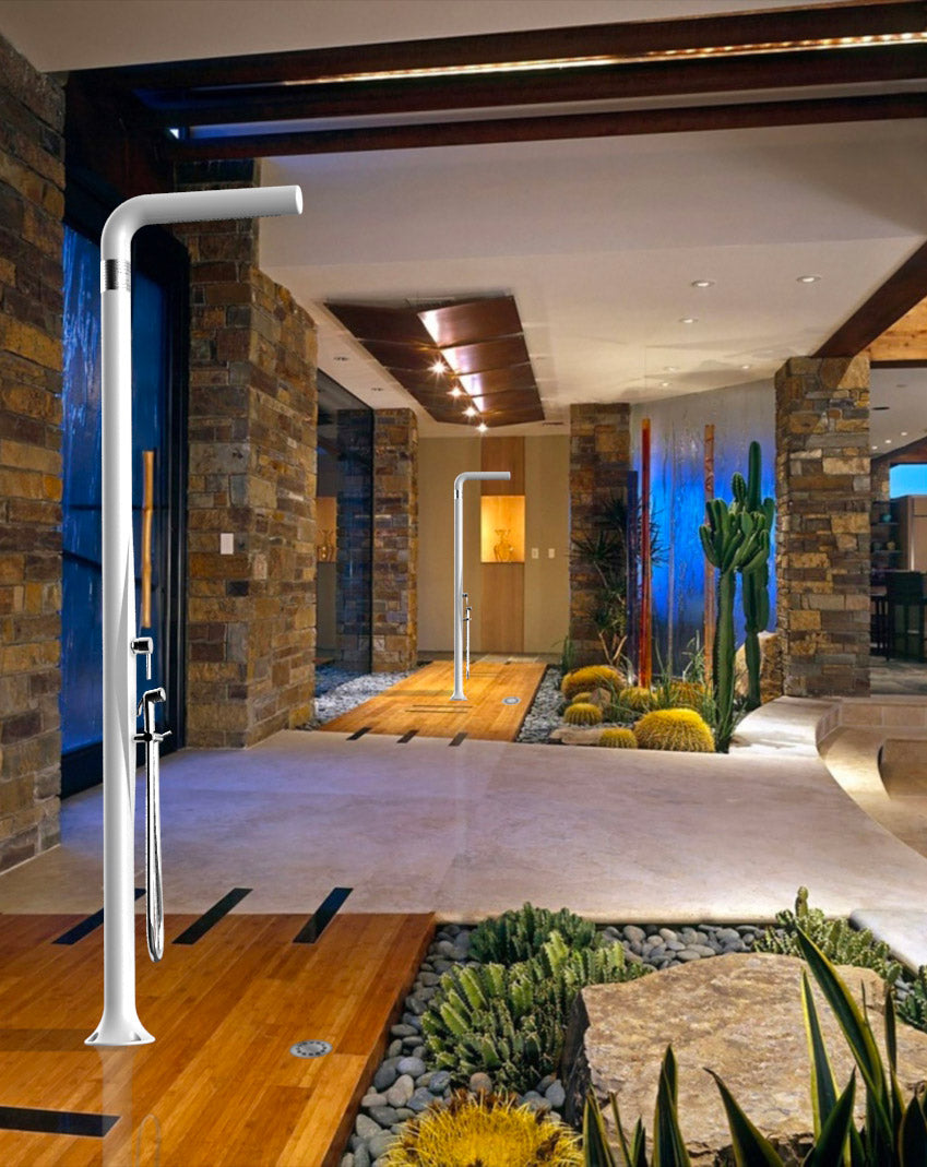 L'armonia e l'eleganza delle sue forme la rendono un complemento d'arredo adatto per qualsiasi ambientazione, sia solo per il giardino o se necessitate di una doccia per la vostra piscina. Ideale per strutture pubbliche e balneari.
