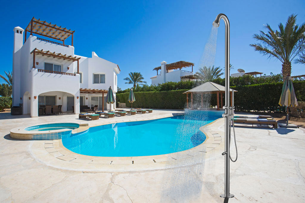 Die Pooldusche Modell Bosa ist eine Dusche aus satiniertem Stahl Aisi Inox 316 mit Stieldurchmesser 60 mm H 2289 mm