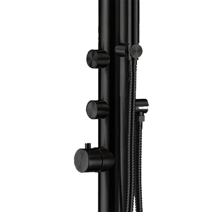- schwarze Außendusche mit Doppelmischer, ermöglicht es Ihnen, heißes Wasser aus dem Duschkopf und der Handbrause zu haben.