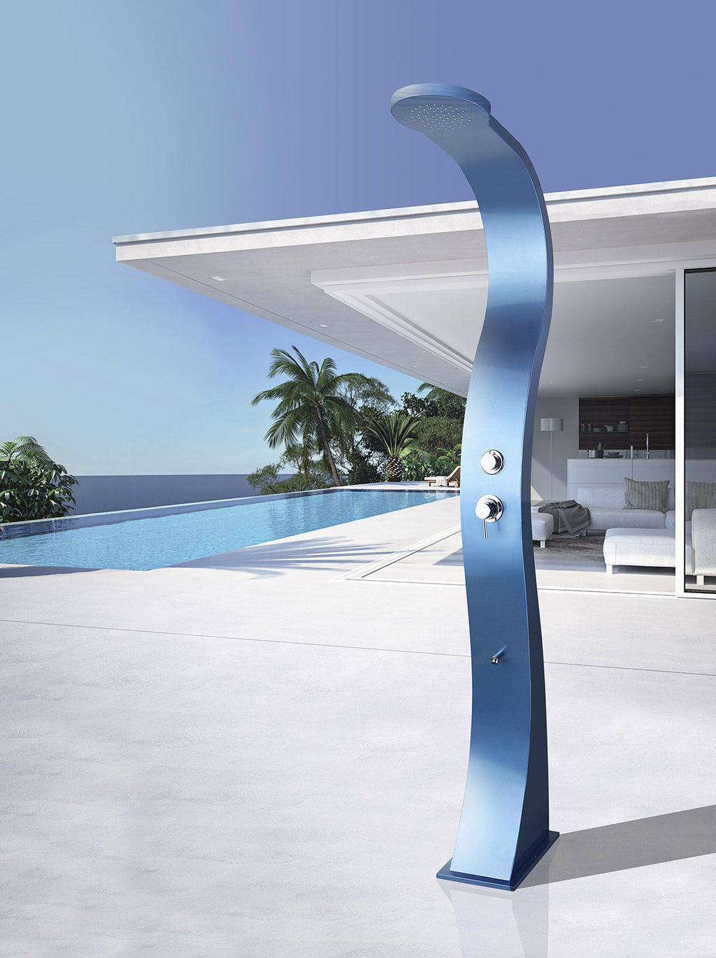 Die Rundungen dieser Brause erfreuen Designliebhaber. Seine Aluminiumstruktur und das leicht schimmernde Finish sind ein perfekter Spiegel für die Reflexionen der Sonne. Seine doppelte Wasserversorgung bietet Ihnen zu jeder Jahreszeit eine heiße Dusche. Sein Edelstahlmischer bietet dem Benutzer eine präzise Temperaturauswahl, während sein Inverter die Wahl zwischen der integrierten Regendusche oder der Fußdusche für eine einfache und bequeme Verwendung ermöglicht.