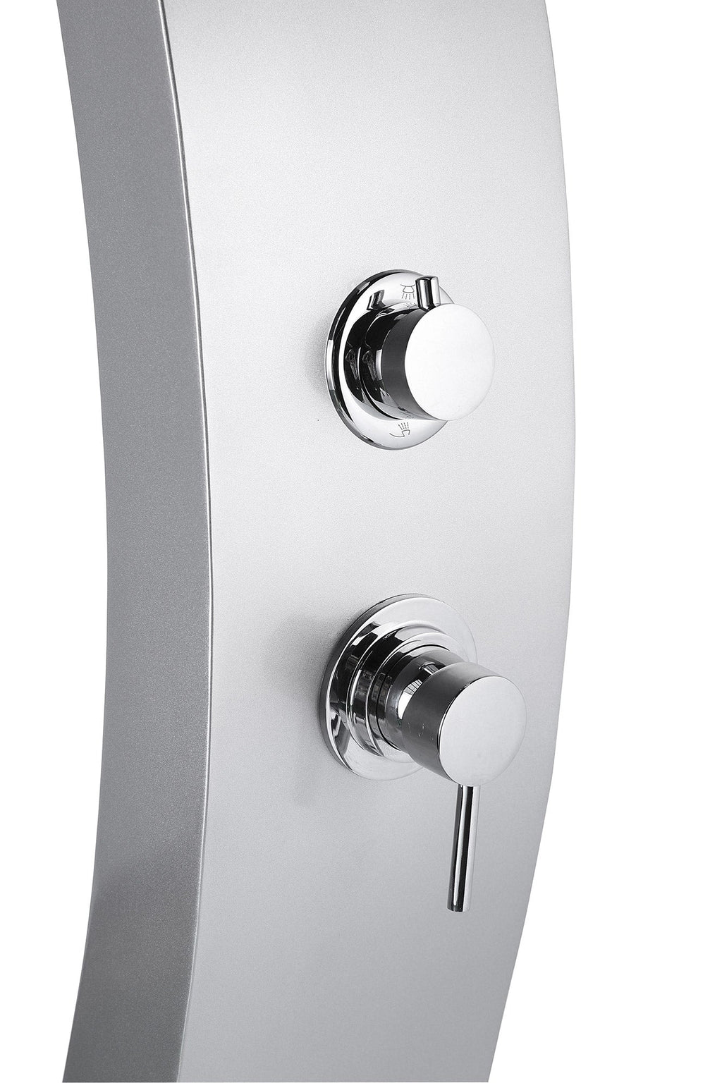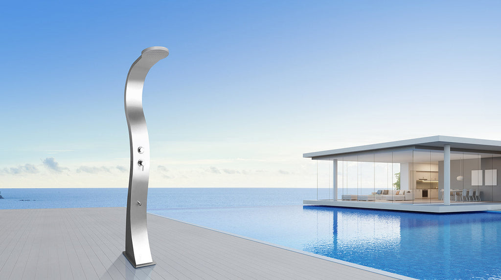 Die Rundungen dieser Brause erfreuen Designliebhaber. Seine Aluminiumstruktur und das leicht schimmernde Finish sind ein perfekter Spiegel für die Reflexionen der Sonne. Seine doppelte Wasserversorgung bietet Ihnen zu jeder Jahreszeit eine heiße Dusche. Sein Edelstahlmischer bietet dem Benutzer eine präzise Temperaturauswahl, während sein Inverter die Wahl zwischen der integrierten Regendusche oder der Fußdusche für eine einfache und bequeme Verwendung ermöglicht.