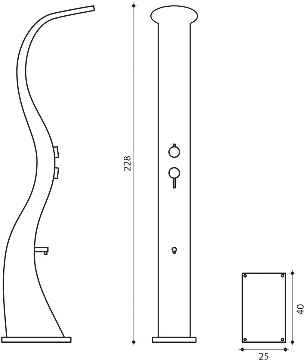 Die Dusche besteht aus zwei Heiß- und Kaltwasseranschlüssen in Standardgröße, um eine heiße Dusche unabhängig von der Außentemperatur zu gewährleisten. Ermöglicht eine einfache Montage und Installation in Ihrem Garten dank des mitgelieferten Befestigungssystems.
