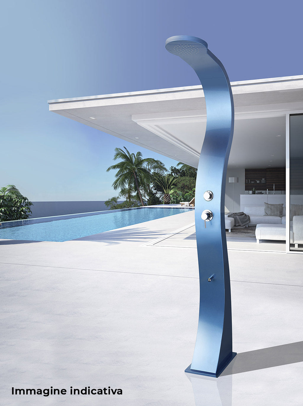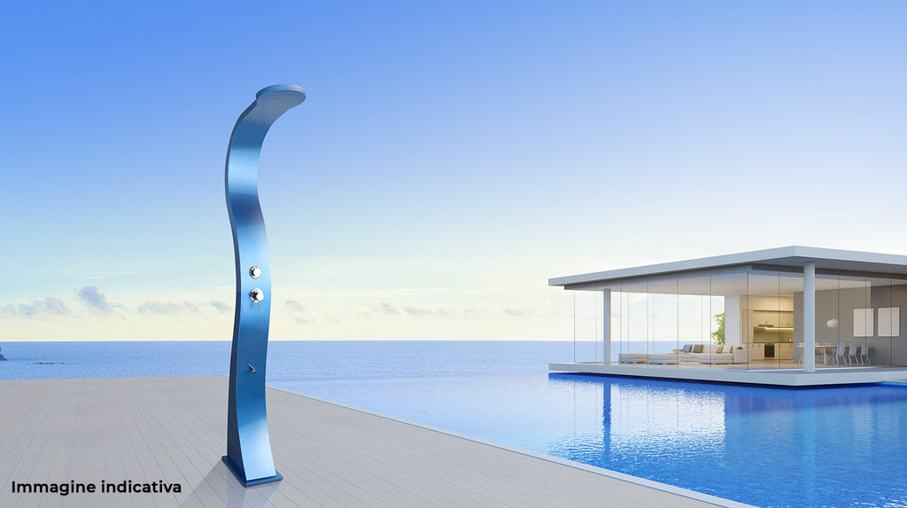 Die Rundungen dieser Brause erfreuen Designliebhaber. Seine Aluminiumstruktur und das leicht schimmernde Finish sind ein perfekter Spiegel für die Reflexionen der Sonne. Seine doppelte Wasserversorgung bietet Ihnen zu jeder Jahreszeit eine heiße Dusche. Sein Edelstahlmischer bietet dem Benutzer eine präzise Temperaturauswahl, während sein Inverter die Wahl zwischen der integrierten Regendusche oder der Fußdusche für eine einfache und bequeme Verwendung ermöglicht.
