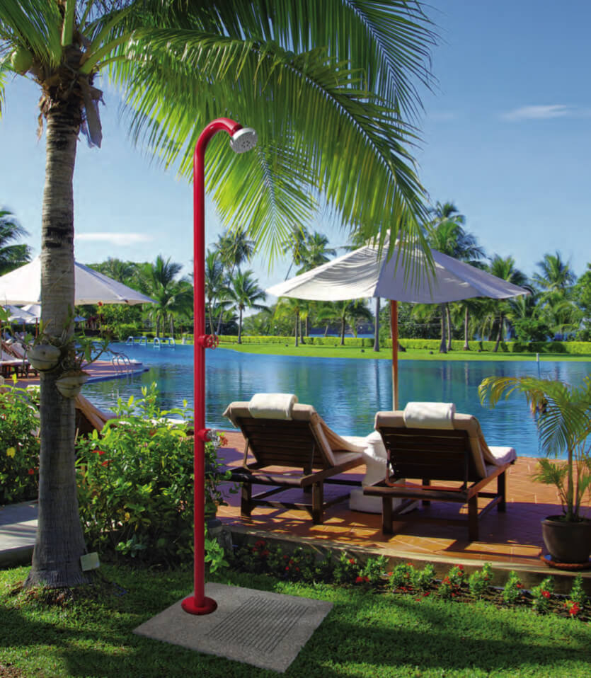 Gartendusche mit komfortablem und praktischem Wasserhahn , besonders in Anwesenheit von Kindern, aber praktisch unter allen Umständen