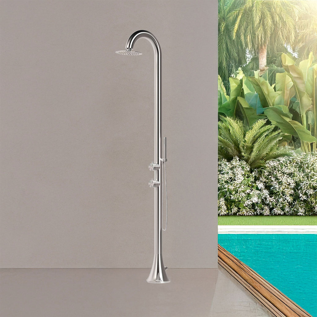 Doccia da Giardino in Acciaio Inox con Doccino Flessibile Sined Luna D Acciaio Spazzolato